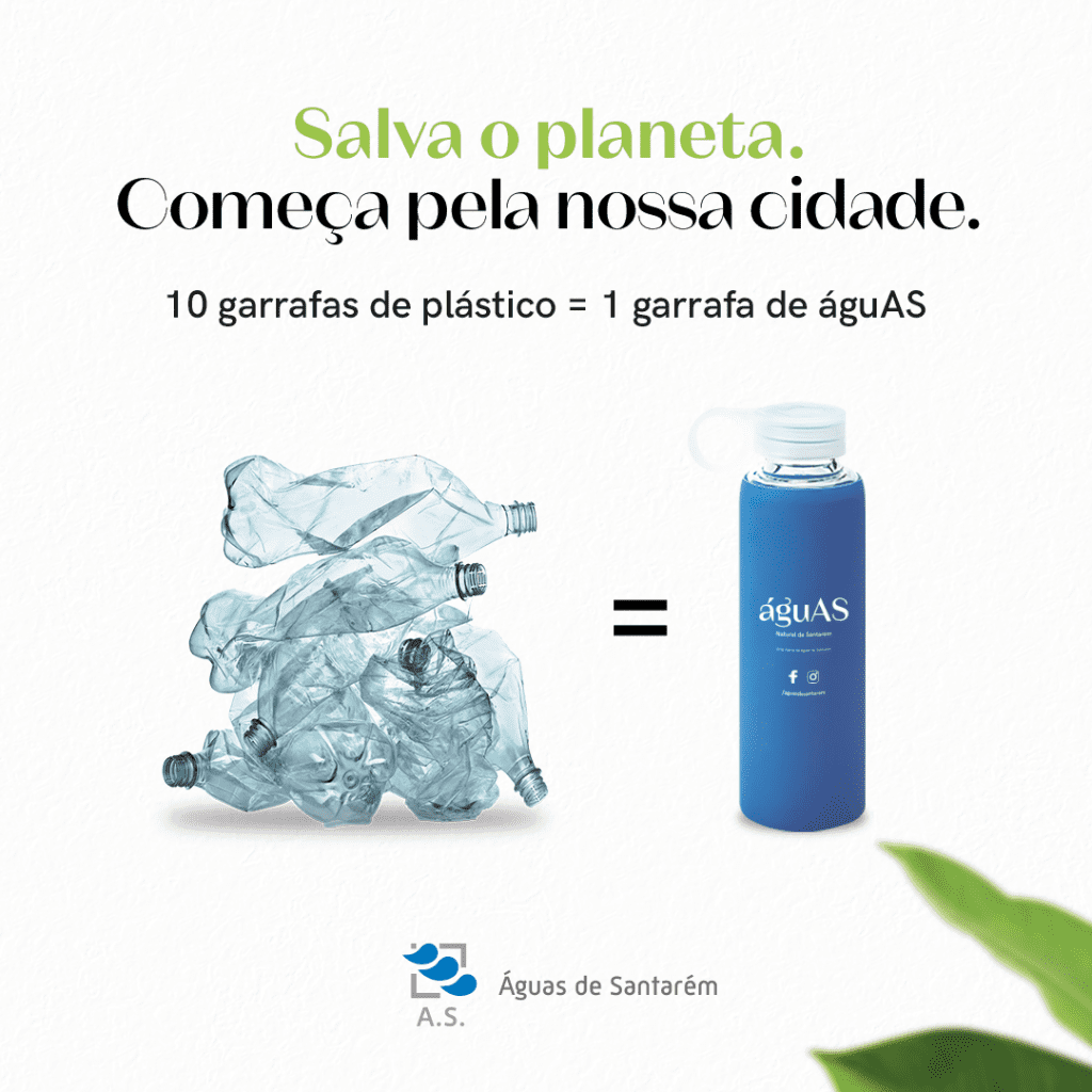 Recentemente, a Águas de Santarém lançou a sua marca de água da torneira, a águAS. Uma água amiga do ambiente, natural de Santarém. Para reforçar o nosso conceito e mostrar o seu compromisso com o meio ambiente, surgiu a ativação de responsabilidade ambiental que ajuda a população a entender melhor a importância de um consumo sustentável de água ao mesmo tempo que reforça a importância de reciclar.
